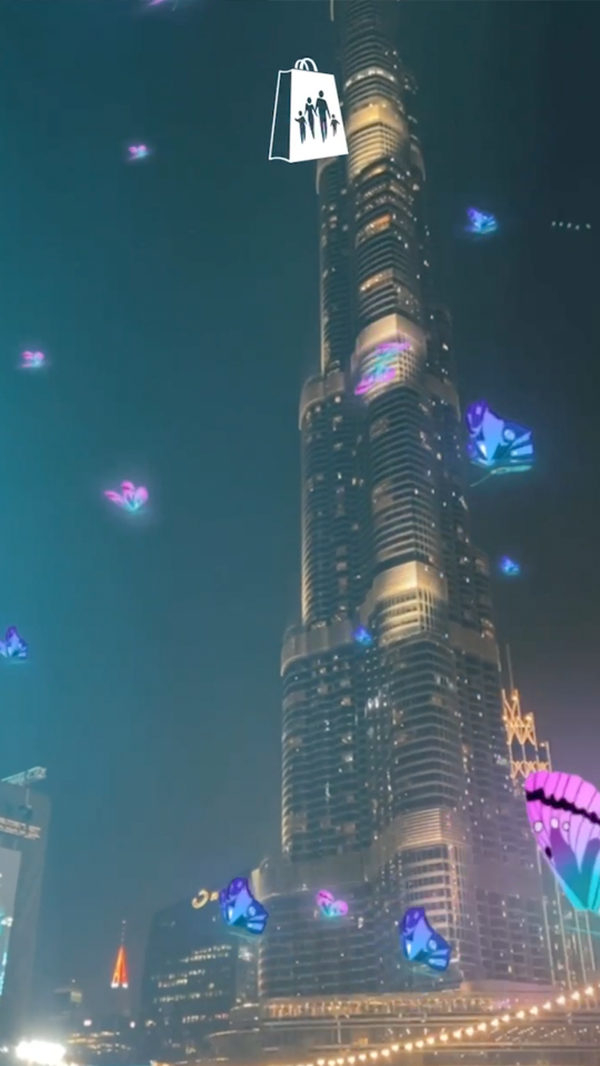 Augmented Reality experiences included butterflies, 3D flowers, and beautiful laser beam formations to add even more magic to the opening party of the Dubai Shopping Festival.